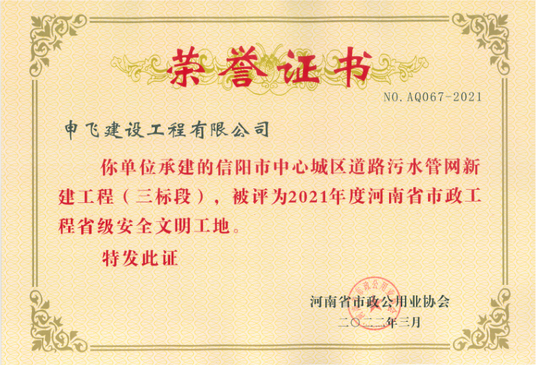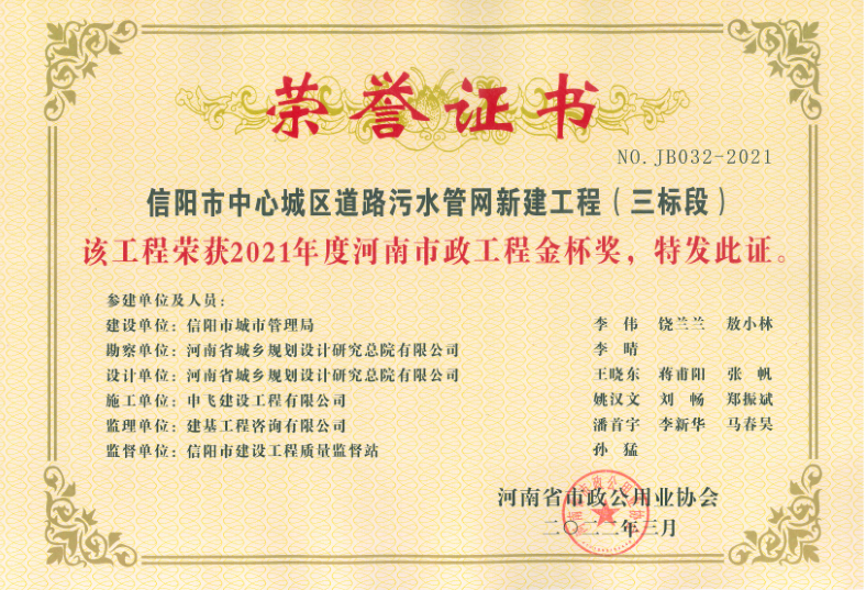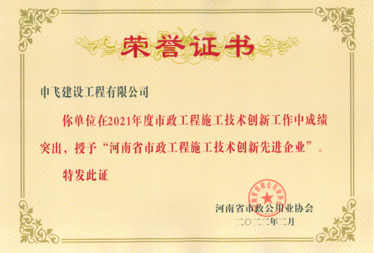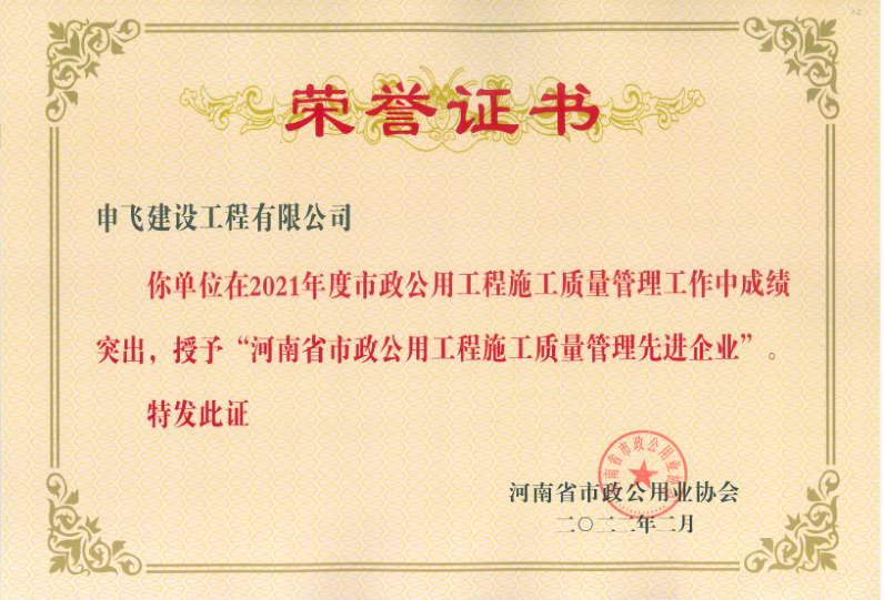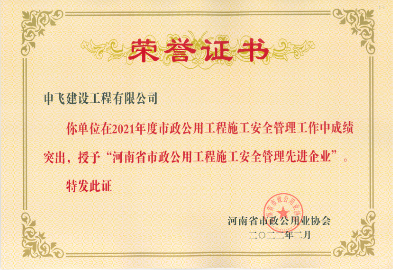 - [04-12]申飛建工再獲“省先進(jìn)施工企業(yè)”、 “市政金杯獎”等多項榮譽